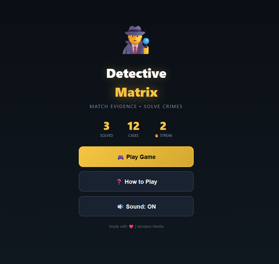 Detective Matrix is the thrilling puzzle game where YOU become the detective! Combine addictive match-3 gameplay with gripping murder mysteries. Every match uncovers evidence. Every clue points to a suspect. Can you solve the case before time runs out?